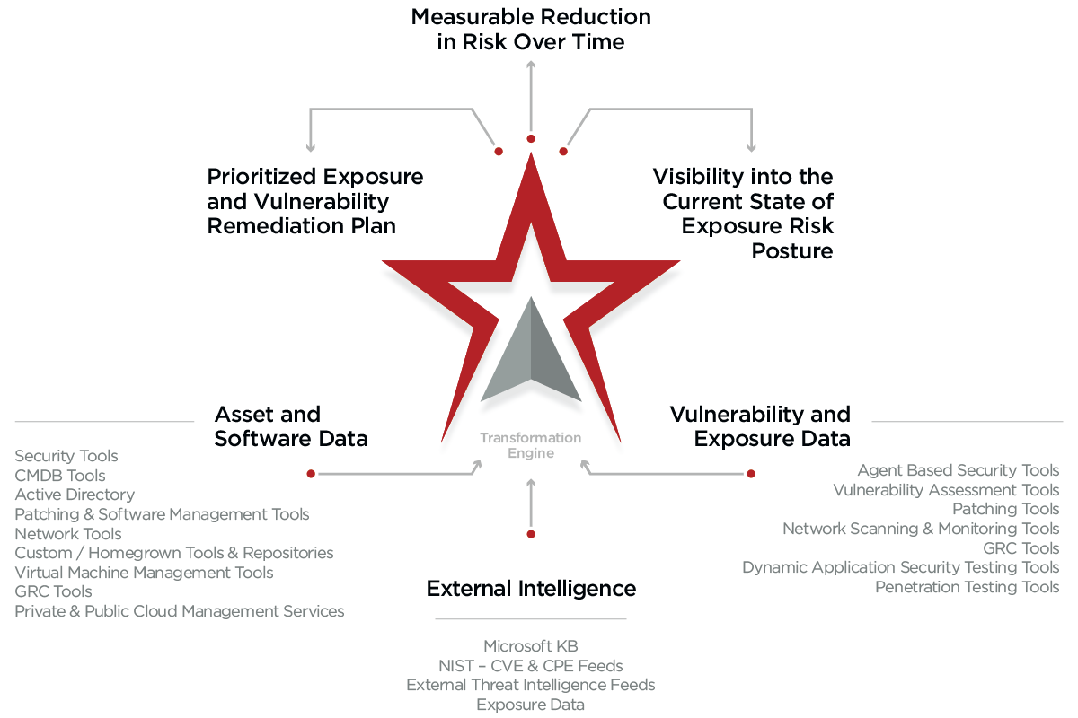 Common exposure categories may include traditional vulnerabilities, missing OS and application patches, missing or misconfigured common tooling, and misconfigurations of system and security settings. Each of these categories represent a uniquely important and measurable impact on the attack surface and subsequent risk related to an asset that cannot be adequately expressed in the current lexicon of vulnerability management.